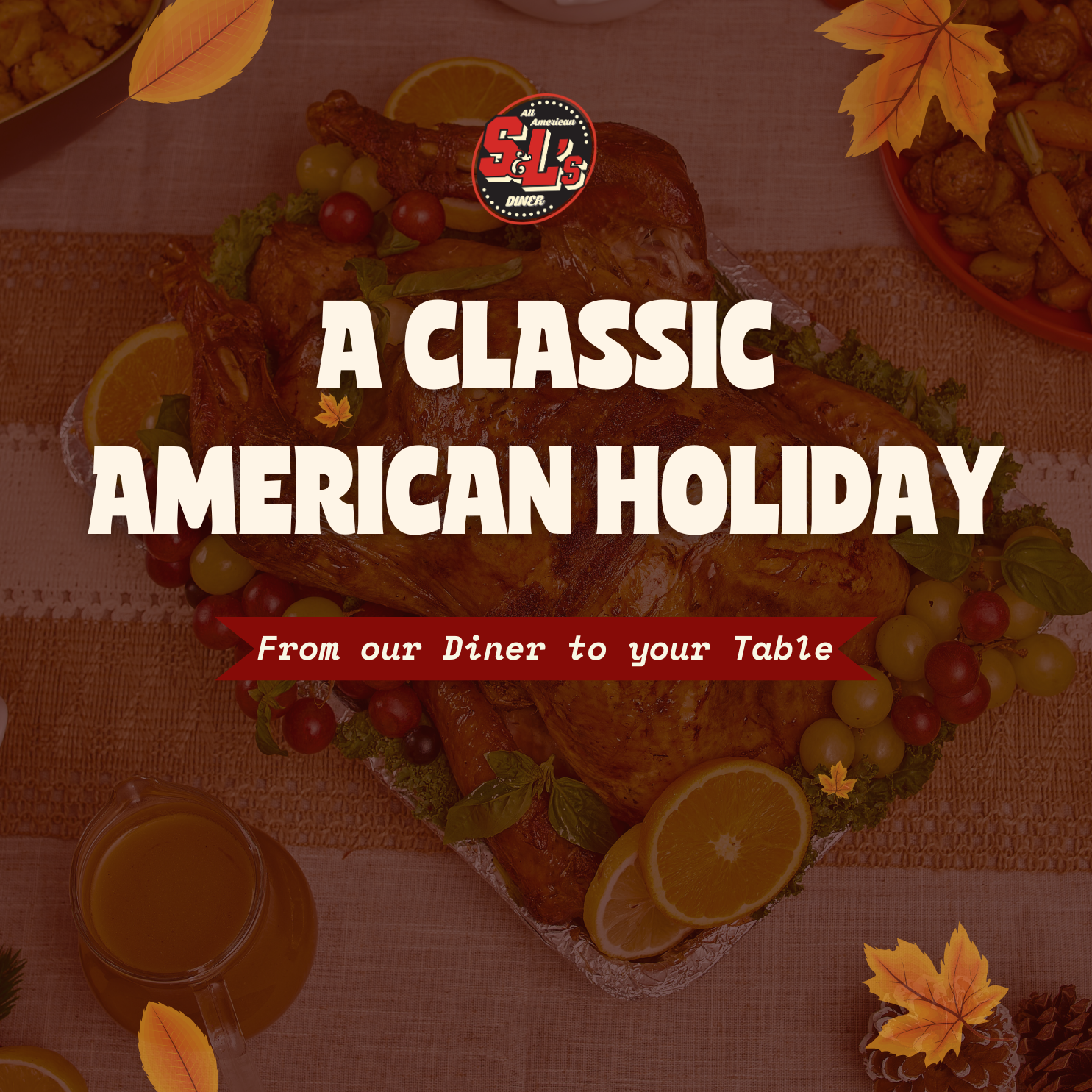With the A Classic American Holiday menu, S&L’s Diner hopes to bring you not only the rich flavors of an American holiday but also a heartfelt thank you for letting us be a special part of your cherished moments together.